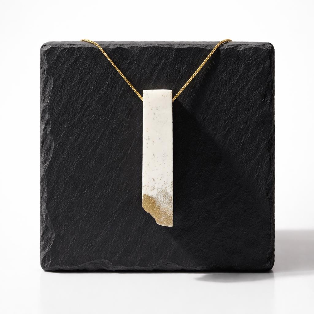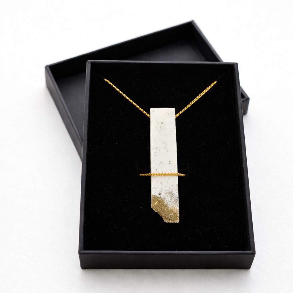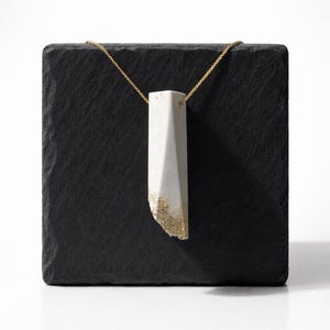 Minimalist gold necklace with rectangular pendant in white with gold accents – model “Gylden”
