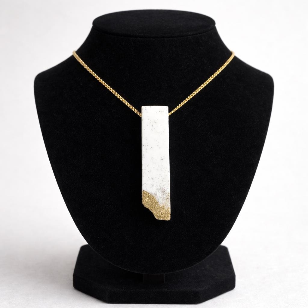 Discover the 'Gylden' necklace: a handcrafted, one-of-a-kind piece made of Raysin with a sophisticated stone look and golden accents. Minimalist, timeless, and elegant – the perfect piece of jewelry for any occasion. Discover it now at Stenoker!